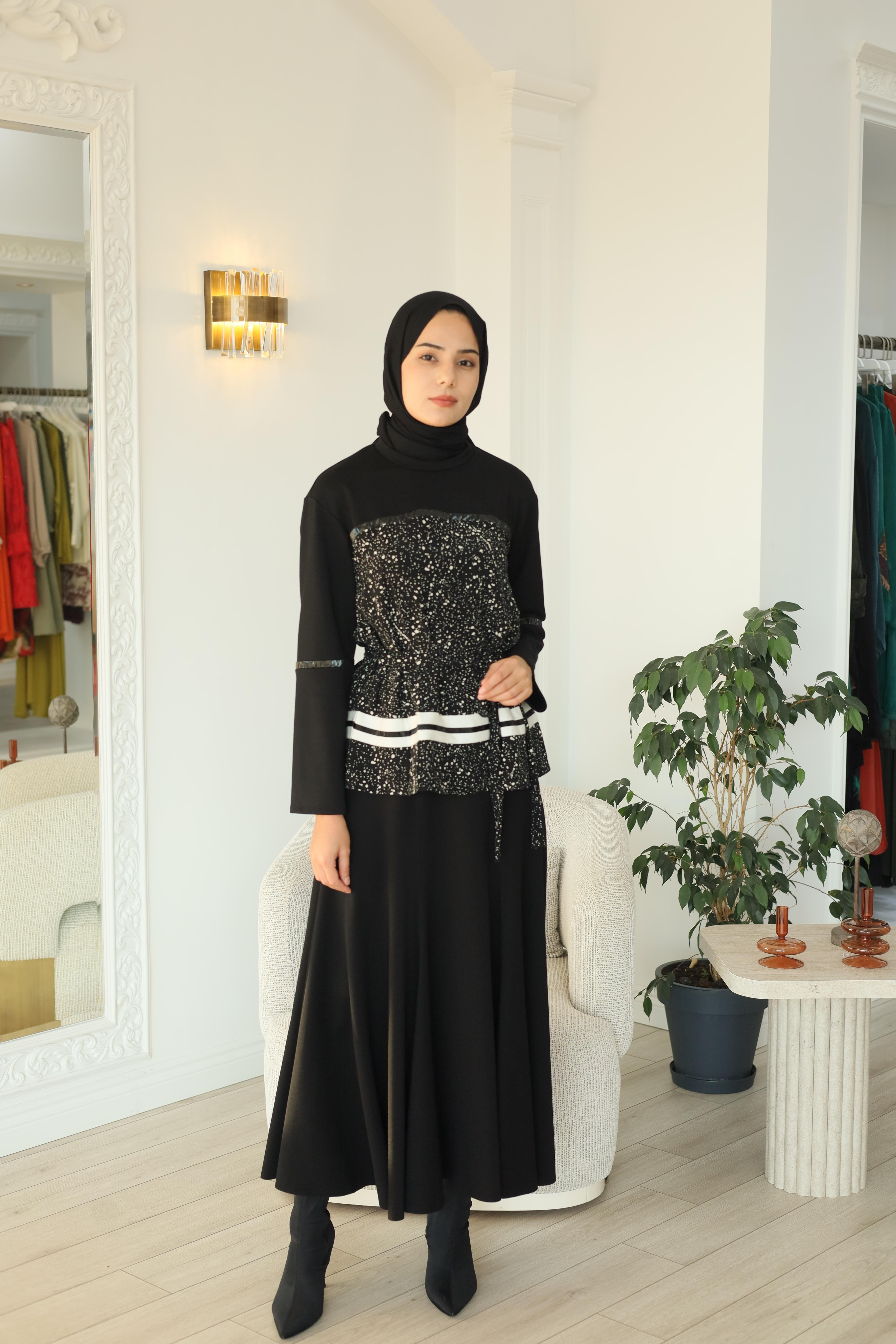 • Model Boy: 174, Kilo: 62 TUNİK Boy: 70 cm Gögüs: 102 cm Bel: 112 cm ETEK Boy: 100 cm Basen: 120 cm Bel: 105 cm'e kadar esneyebilir etek beli lastiklidir.