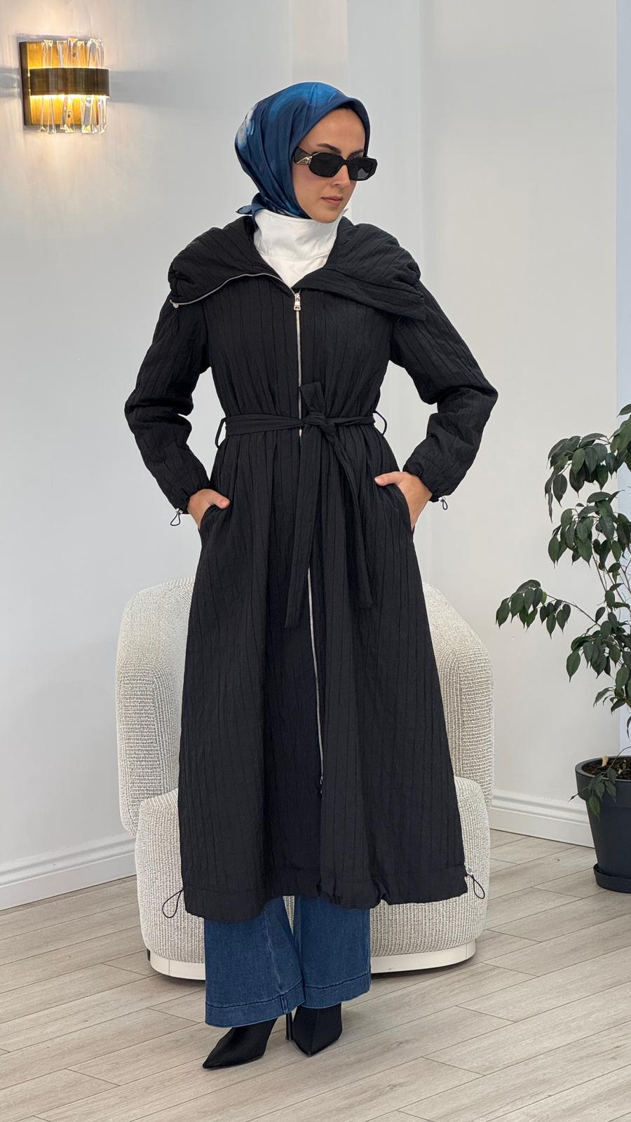 Boy: 135 cm Gögüs: 110 cm Bel: 114 cm Basen: 140 cm •Kumaş: Astarlı ince elyaflı su geçirmez mont kumaşı