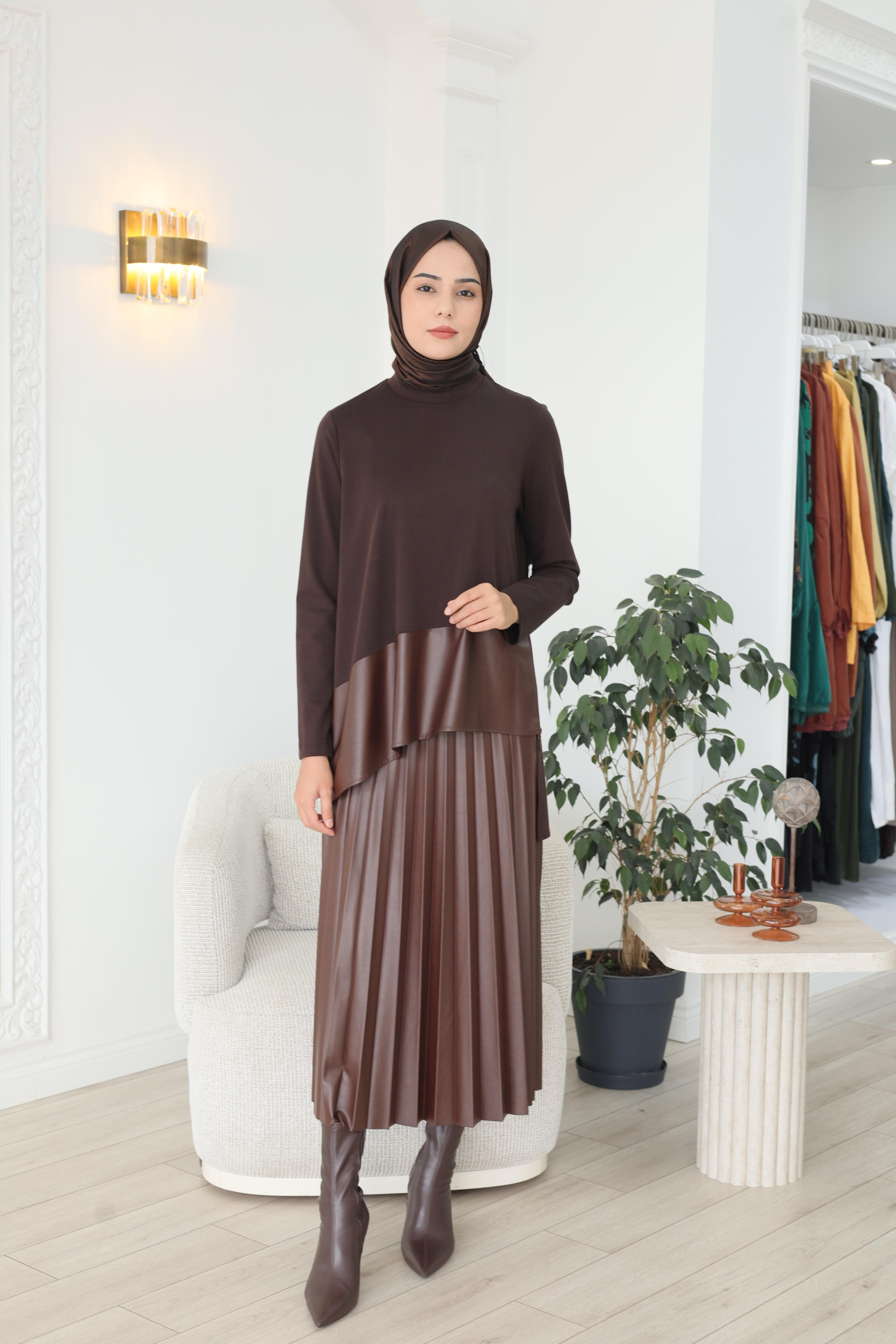 • Model Boy: 174, Kilo: 62 TUNİK Boy: 78 cm Gögüs: 110 cm Bel: 112 cm ETEK Boy: 85 cm Basen: 120 cm Bel: 100 cm'e kadar esneyebilir etek beli lastiklidir.